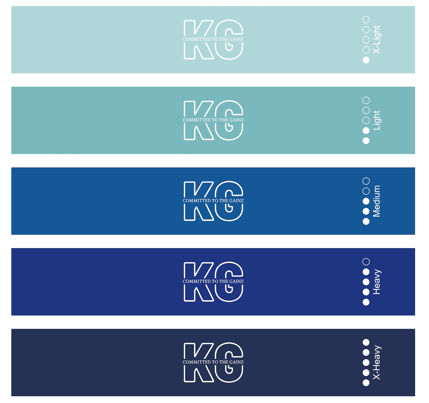 1 set of bands comes with 5 different resistance levels. The set comes with its own bag. Latex material.